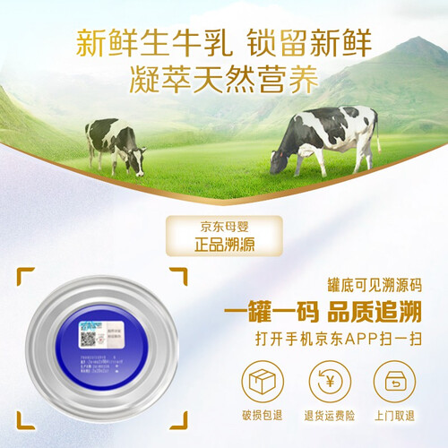 加盖锁鲜技术设计,防止奶粉潮湿,避免泄露问题。全程可以追踪溯源,方便了解生产过程,饮用放心。