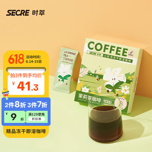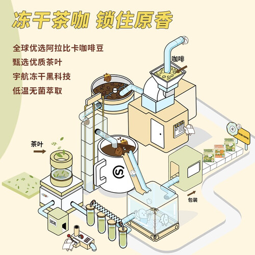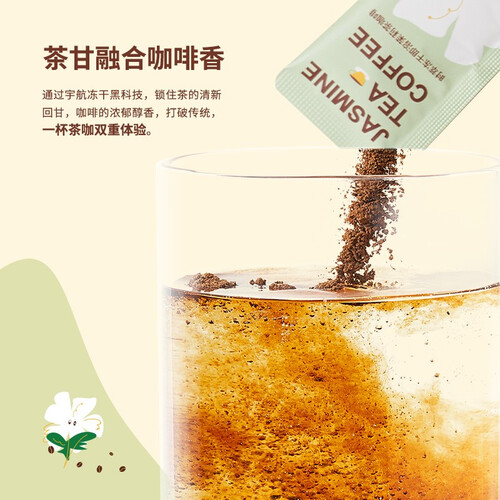 采用宇航冻干黑科技,可以更好的锁住茶的清新回甘,使咖啡浓郁醇香,双重体验。采用茉莉花香风味,上班饮用感受舒适柔和口感。