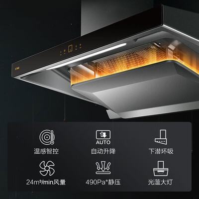 AI温感智控,可以智能检测烹饪状态,实现全灶具联动使用。机身下潜设计,通过缩短进烟路径快速吸烟,不放跑一丝油烟。