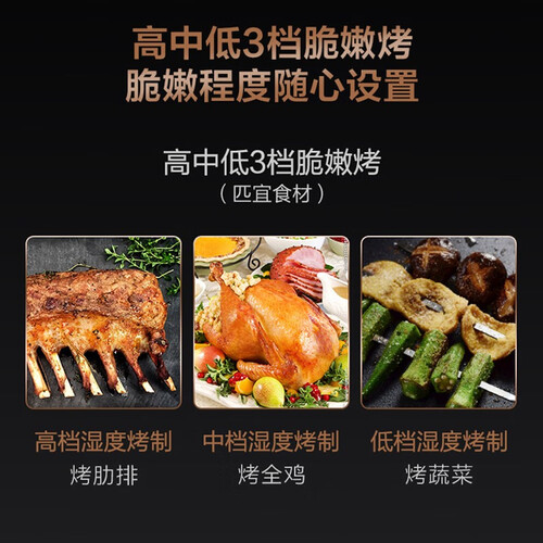 高中低三挡脆嫩烤,能做出多种口感,你可根据自身饮食习惯去选择。搭载防冷凝水技术,内壁不会向下滴水,不影响食物口感。