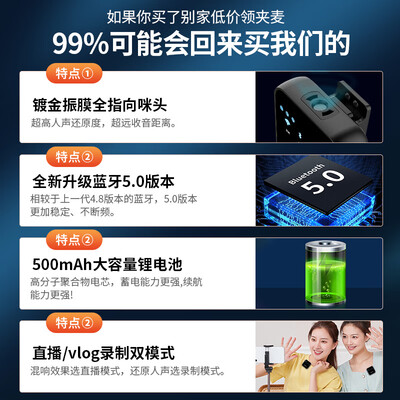 无线连接设计,省去线控烦恼和限制,可无线进行直播和VLOG录制。设有安全音轨模式,自动降低声音,避免爆音产生。