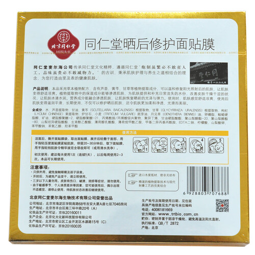 同仁堂 晒后修护 面膜
