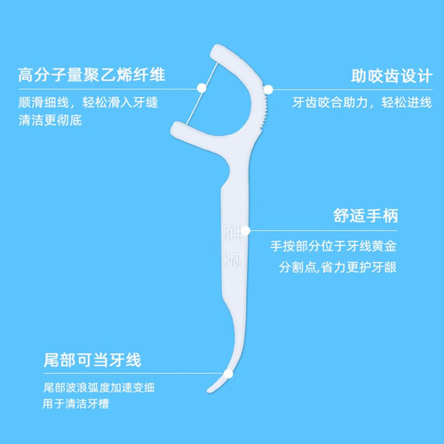 采用高分子纤维牙线,耐磨性较好,韧性提升不易断裂。清洁过程较为温和,不易损伤牙釉质,可保持牙齿健康。