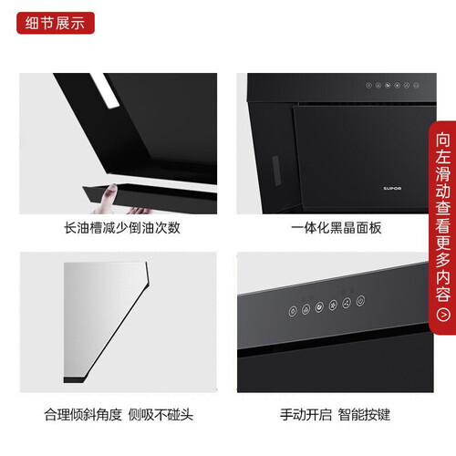 四面进风的立体环吸设计,全面增强拢烟效率,有效避免油烟困扰。强劲的立体环吸,四面八方包抄,油烟不乱跑。