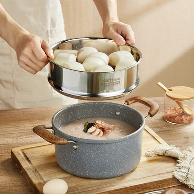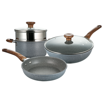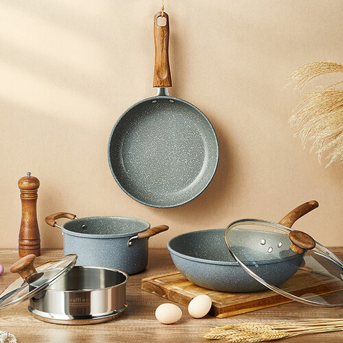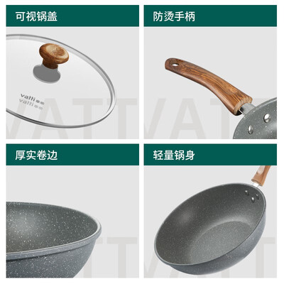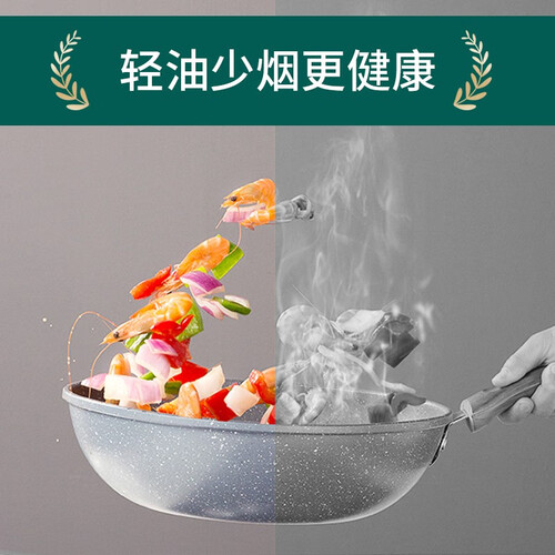 采用轻量化锅身设计,配以人体工学的木纹手柄,能使握持更加轻松省力。同时拥有麦饭石色涂层,可减少油烟让烹饪更便捷。