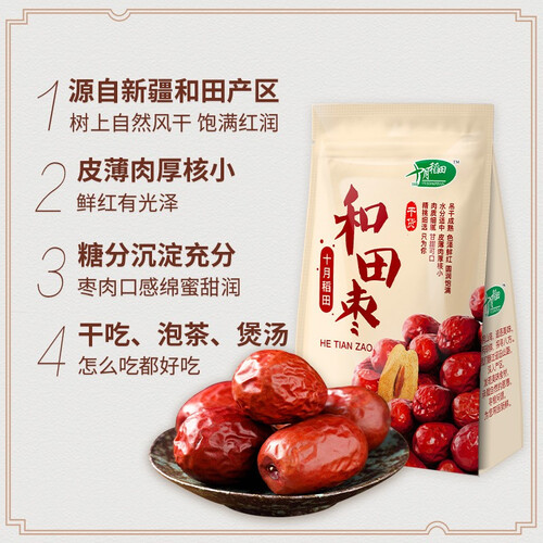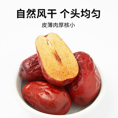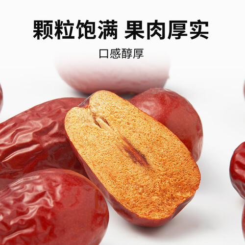 坚持人工手选,果型饱满且大小均匀,枣皮红润有光泽。采用自然挂干的制作工艺,使糖分得到充分的沉淀,果肉软糯而富有弹性。