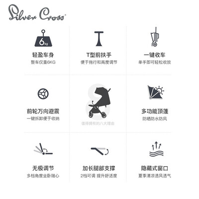 车身仅重6kg,可折叠变身小行李箱,T型前扶手可根据需要自由调节高度,便于拖行。顶棚带有小天窗,方便察看宝宝动态。