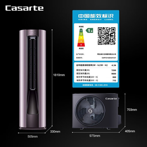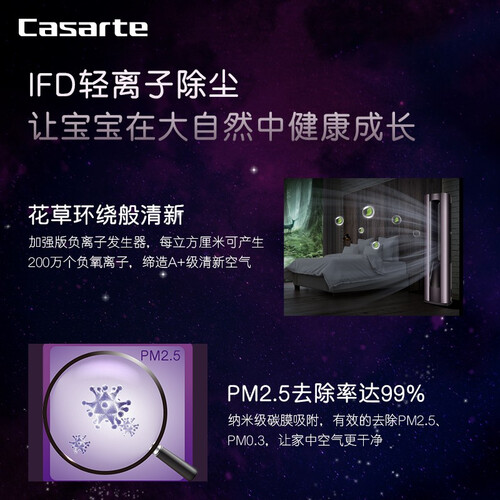 符合一级能效标准,节能又省电。自清洁功能,可保持内部洁净,出风更清新,同时释放负离子,能有效去除空气中的粉尘和有害气体。