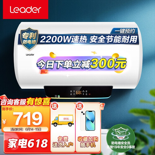 升级2200W大功率,可以快速加热洗澡水,沐浴无需久等。国际标准防电墙,连续18年安全0事故,可以边洗边加热。