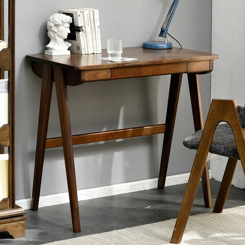 这是一款极简造型的书桌,实用性强,适合大多数人使用。配以宽大的实木桌面,不易开裂变形,结实又耐用。