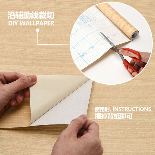 木纹设计,纹理清晰美观,带来舒适的视觉感受。自带背胶,使用更加方便快捷,可轻松翻新陈旧的墙面与家具。