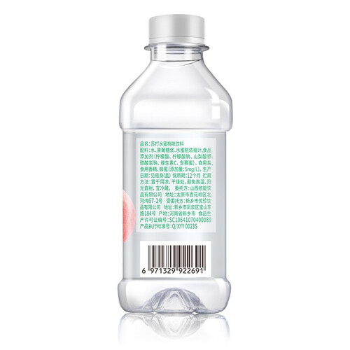 不含蔗糖、脂肪、能量,水蜜桃口味,释放出淡淡清香,运动时适合饮用,优质水源,经过层层过滤,质地格外纯净。