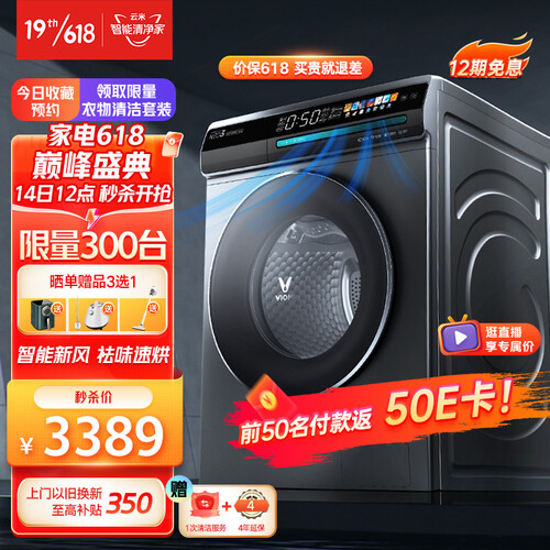 采用新风速烘技术,烘干衣物省时50%,提升干衣效率。搭载智能双投放,无手动投放麻烦,彻底解放双手,懒人福音。
