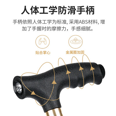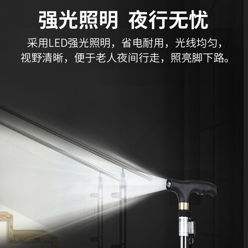 手柄采用人体工学设计,弧度自然,贴合掌心,抓握更舒适。加载LED强光照明,光线均匀,视野更清晰,方便老人夜间出行。