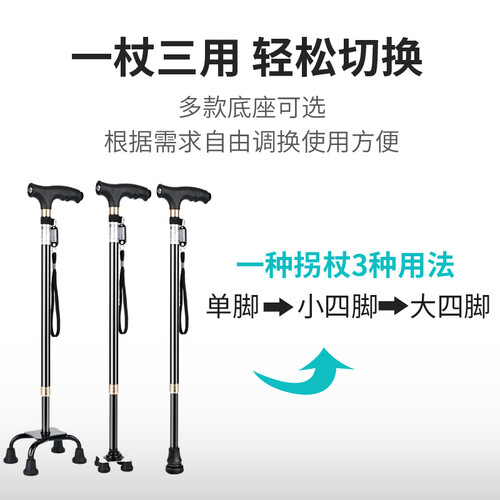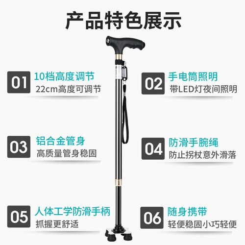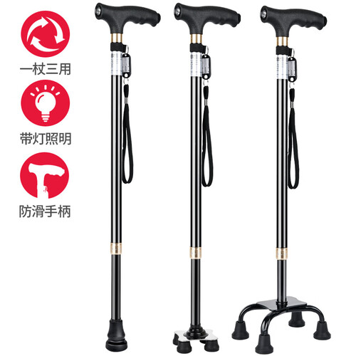 乐来福 带灯伸缩四脚拐杖