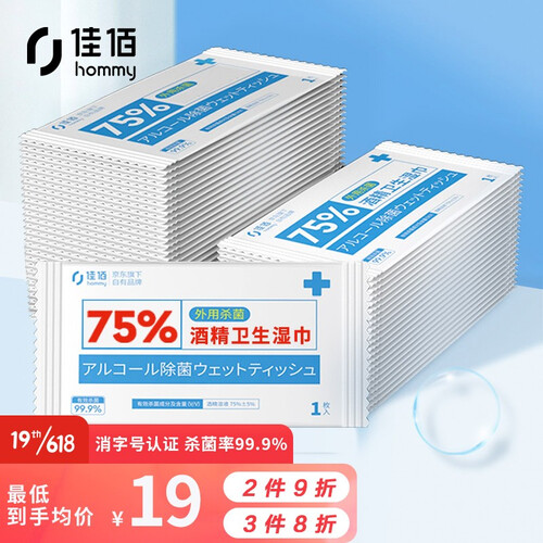 京东京造 便携单片酒精湿巾