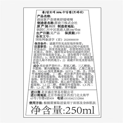 蕴含榨汁后发酵而成的芦荟汁液,将芦荟的活性成分传入肌肤深处,加速肌肤补水力度。不添加乙醇,涂抹后能防止水分流失。