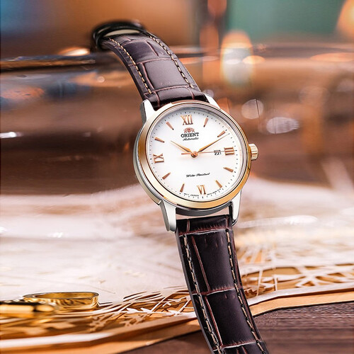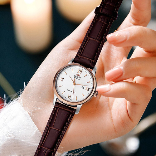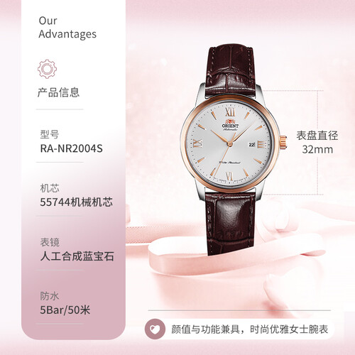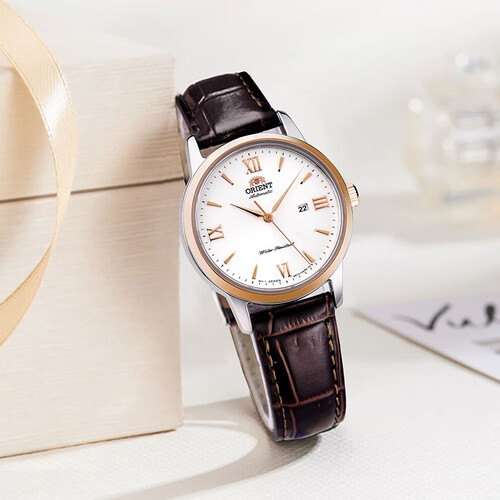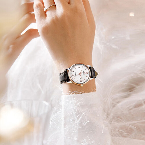 真皮材质的表带,柔韧度很高,手感也非常舒适。同时绿色的表盘,清新又美观,减龄效果很好。