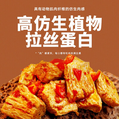 仿生肉感,咀嚼感强,吃起来香辣不油腻,全家人都喜欢。采用中温慢烤制作工艺,拒绝油炸,健康美味,好吃无负担。