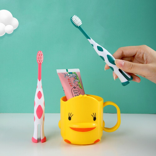 迷你童趣防滑刷柄设计,轻松握取,符合人体工学设计,不费手不伤手。圆润小刷头,配备柔软刷丝,360度呵护宝宝口腔。