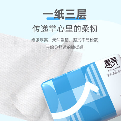 采用原生木浆经过高温处理,温和安全,减少肌肤刺激,适合全家使用。同时具有较强的吸水性,柔和洁净不掉屑。