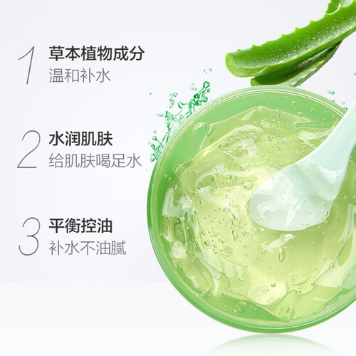 芦荟凝胶能够舒缓修护肌肤,改善肌肤不适,解决肌肤几大问题。兼具保湿水润功效,让肌肤恢复润泽,保持水莹饱满。