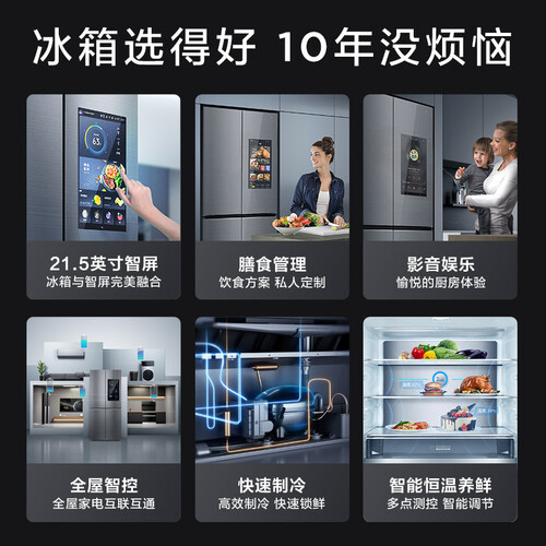 具有快速制冷功能,膳食存储紧密锁鲜,维持如初难忘的滋味。支持远程智控功能,手机成为遥控器,随时掌握冰箱温度。