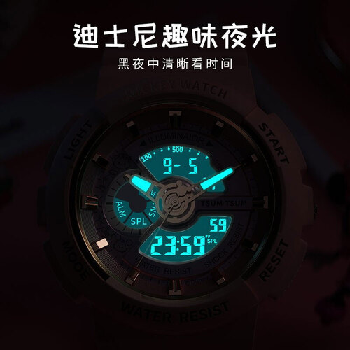 迪士尼防水夜光圆盘运动手表