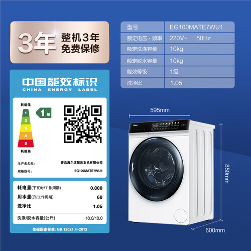 海尔 蒸汽变频滚筒洗衣机