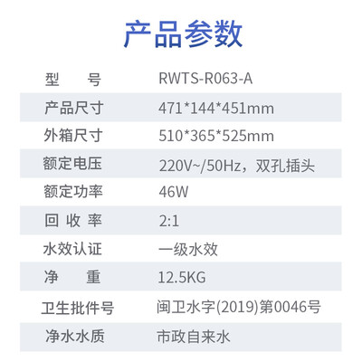 优雅精简的迷你机身,安装灵活节省空间,可提升厨房整体整洁度。每分钟1.05升大通量出水,满足全家用水需要。
