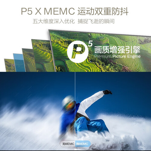 选用MEMC运动补偿技术,可实现家人快速观影,避免卡顿拖尾。杜比全景声,营造沉浸真实画面视听,打造优质影像氛围。