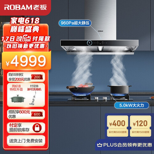 老板 大吸力 熄火保护烟灶套装
