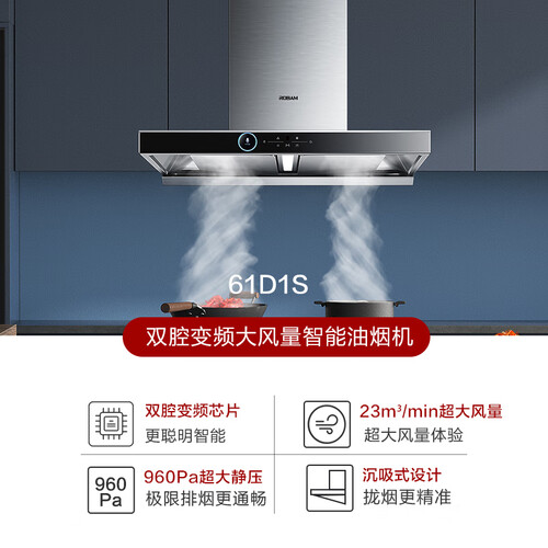 双腔变频大吸力+数字变频电机,可根据烟道风阻调整转速,时刻保持顺畅排烟。搭配悬浮式双拢烟板,双灶开启无压力。