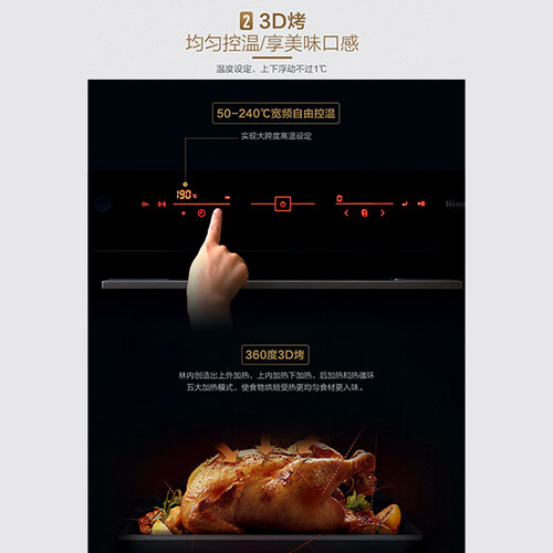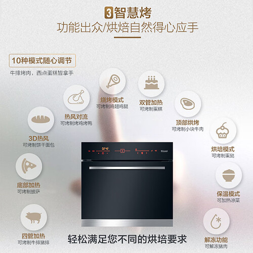 精准的智能控温设计,上下温差不会超过1度,食材蒸烤恰到好处。烤叉360度自动旋转,美食多面受热均匀。