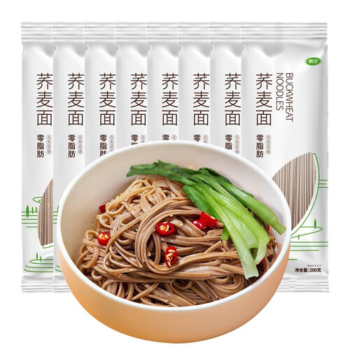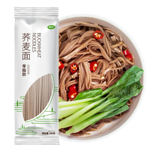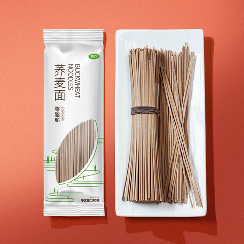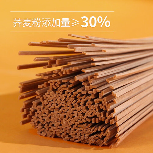 含有高于三成的荞麦含量,不含白面粉呈现出自然色泽。无脂肪的荞麦面条,是健身人士代餐的不错选择。