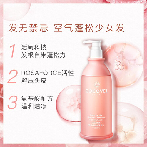 PSR专利技术,深度调理头油旺盛,发丝之间相互排斥,改善扁塌幼细,秀发蓬松盈盈。氨基酸配方,温和净澈,发根轻盈。
