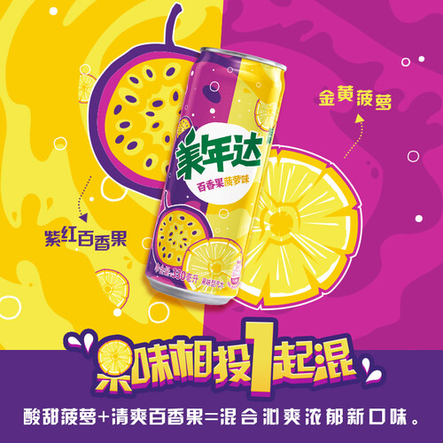 菠萝和百香果交互碰撞,混搭出全新的酸甜果味,沁爽清新又浓郁怡人,新奇的滋味在舌尖蔓延,带来有趣刺激的味蕾体验。
