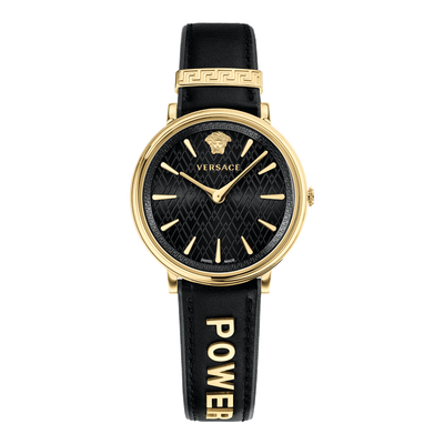 经典黑金配色,表盘采用雕饰纹设计,具有高级气质。搭载瑞士石英机芯,走时准确避免误差,品质更佳。