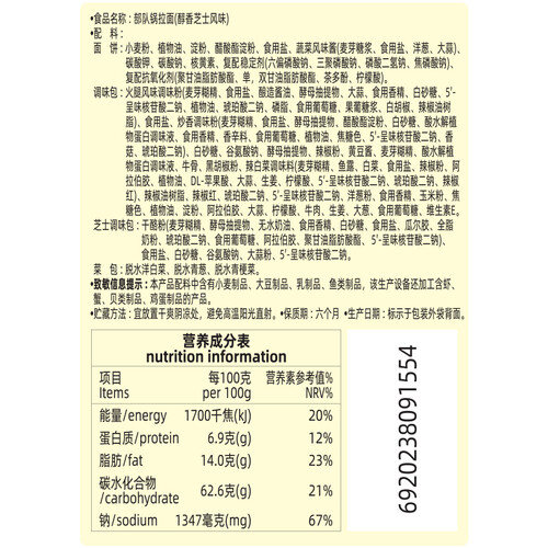 在汤面中添加大片芝士配料,增加面食的香浓层次感。精选澳洲小麦粉结合马铃薯粉,制作有弹性的面条。
