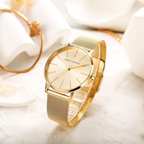 阿玛尼 编织钢带镶钻手表
