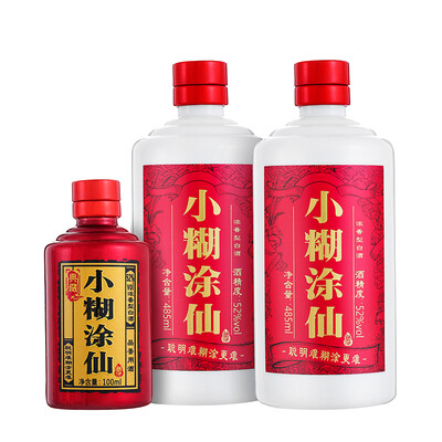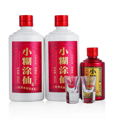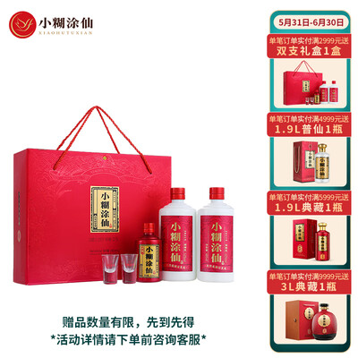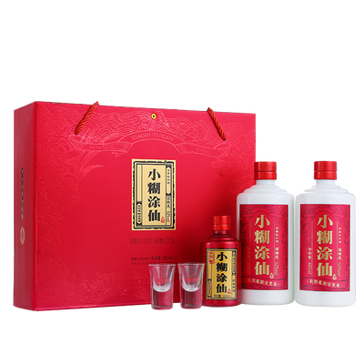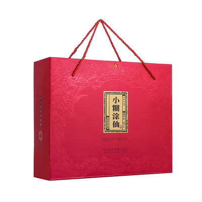 以中国红为主要元素的精致礼盒中放置着两瓶上乘美酒,寓意美满,大气十足,用于礼赠十分体面。