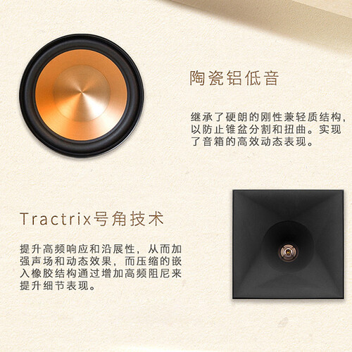 应用陶瓷铝低音技术,降低音质分割试过,让音质更加圆润。使用混合截面TRACTRIX号角技术,带来清晰音质效果。