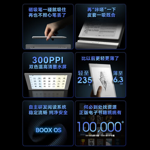 配套的磁吸笔一碰就吸住,舒适好用。搭载升级八核处理器,降低功耗的同时使用更流畅,随处轻办公,畅享丝滑阅读体验。