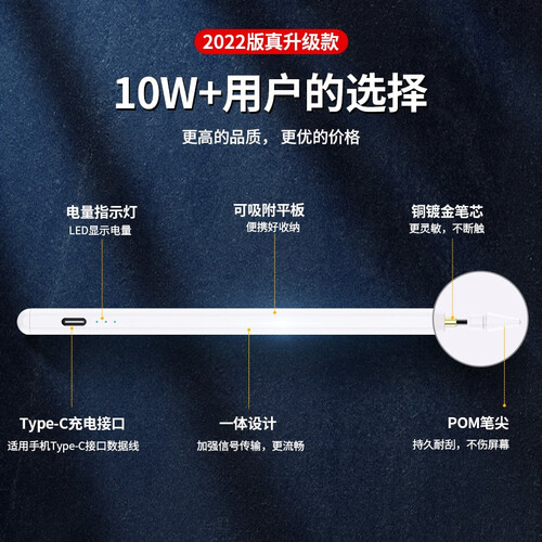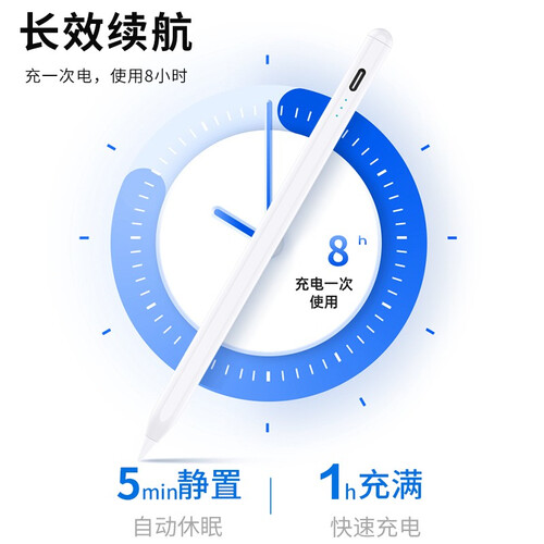 镀铜笔芯材质,大幅度提升传导性能,反应灵敏快速响应。搭载磁吸式充电器,60分钟便可充满电量,续航长达一个月。