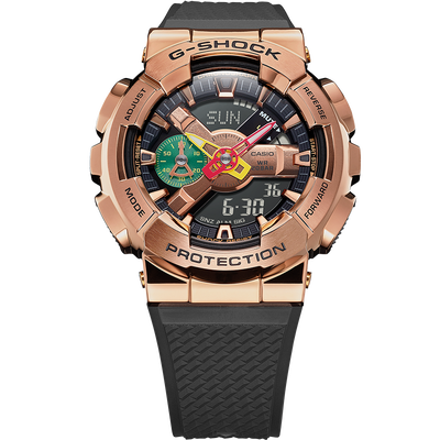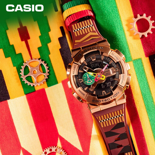 表盘融合红、黄、绿三色交相辉映,呈现吸睛亮眼的潮流色调,遍布八村塁的相关元素。表壳采用玫瑰金IP涂层,呈现更统一的色调。