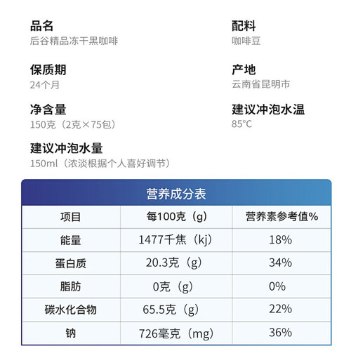 采用零下50℃冻干技术,可以使咖啡豆的醇香充分保留,锁住原香。采用小包装设计,可以随时随地进行冲泡,随时提神醒脑。