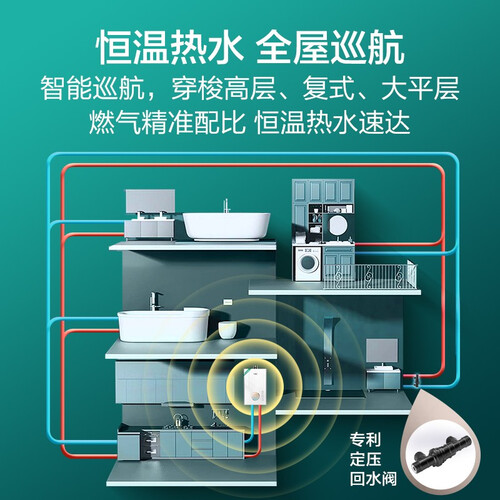 专利单管巡航即热系统,开机即享舒适热水;支持远程操控,轻松体验零冷水。循环劲热引擎,高层、复式、大平层也能实现热水速达。