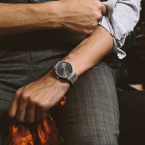 每一枚摩纹手表,在8点位置都有醒目的红色标记,是对品牌的严谨也是对品质的把控。黑色镀金表盘,线条流畅,凸显材质光泽。