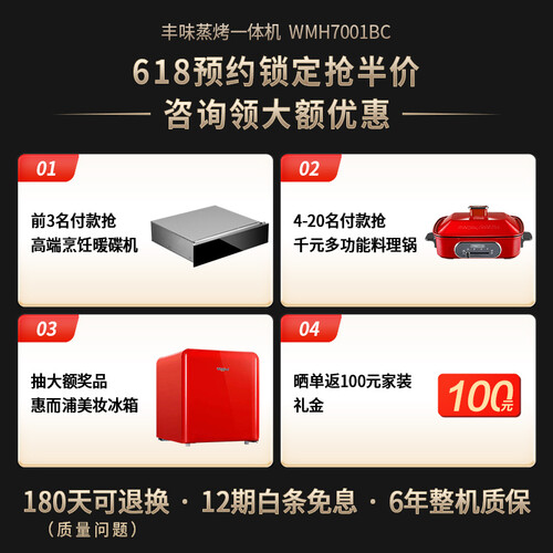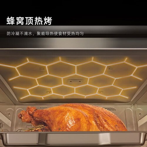 采用五段智能变频蒸汽技术,不同食材匹配不同程序,牢锁食物鲜嫩营养不流失。蜂窝顶热烤设计,聚能导热受热均匀,防冷凝水下滴。