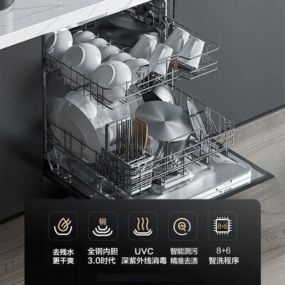 直驱式加热洗涤泵,保持72℃高温冲掉顽固油污,消除细菌。智能感应照明灯设计,开门灯光就亮,方便拿取碗筷。